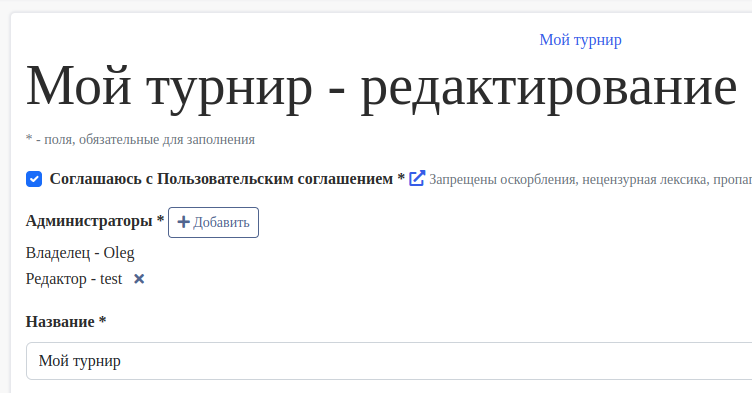 Система позволяет редактировать турниры и вносить результаты игр не только автору турнира, но и другим назначенным редакторам.