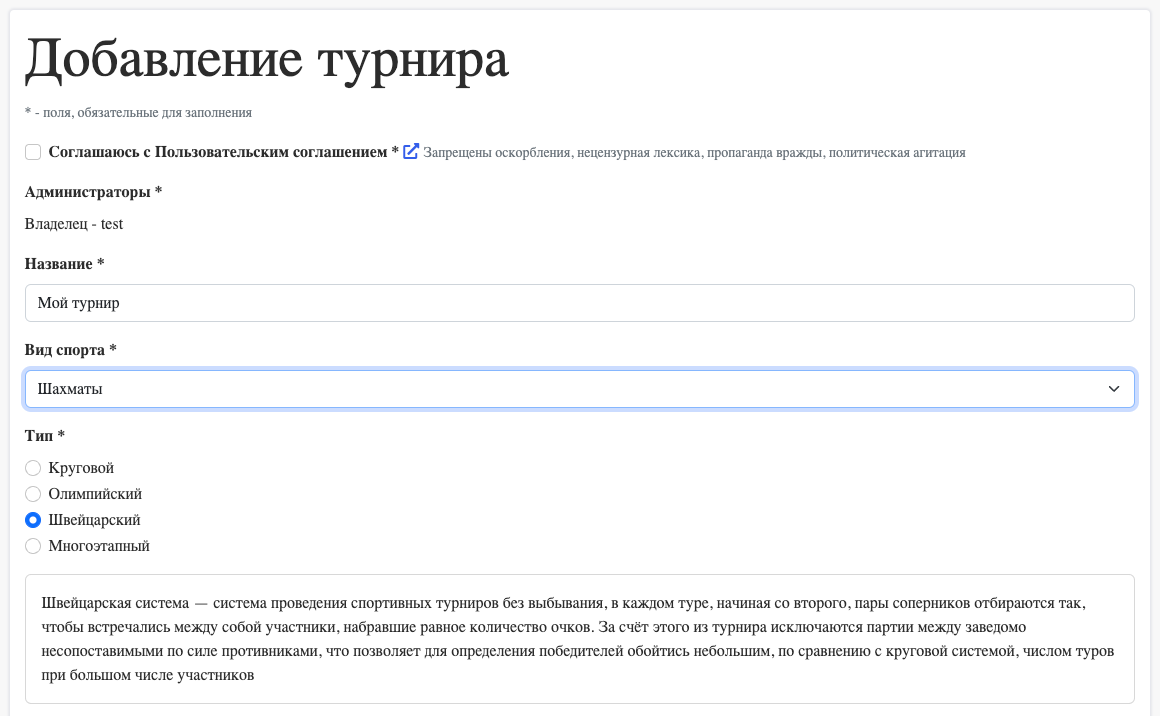 Следующим шагом будет добавление участников. Смотрите инструкцию Участники турнира